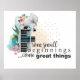 Elephant Niedlich Baby Sprichwort Floral Poster Die Grafik ist von einem Elefanten pieking über ein F mit dem Sprichwort, Von kleinen Anfängen kommen großartige Dinge. So ein liebevolles Geschenk für eine Babydusche, Kinderzimmer oder große Kinder.