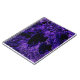 Tief lila schwarze Taro Blätter auf einem lebendigen lila und indigofarbenen Hintergrund.