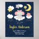 Dieses niedliche und skurrile Poster ist mit einem bezaubernden Babyelefanten in einem rosa Bogen ausgestattet, der auf einer Wolke mit fallenden Sternen sitzt. Im Hintergrund ist ein sterniger Nachthimmel und ein Halbmond. Der Text kombiniert handgeschriebene Skripte mit serifenlosen Schriftart für ein stilvolles und modernes Design. Es kann personalisiert sein mit den Geburtsdaten Ihres Babys, wie z.B. Name, Größe, Geburtsdatum und -zeit, oder wenn Sie es als Duschgeschenk geben möchten, können Sie Text bearbeiten und entfernen.