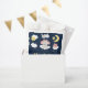 Dieser niedliche und skurrile Liebesbeutel ist mit einem bezaubernden Babyelefant in einem rosa Bogen ausgestattet, der auf einer Wolke mit Sternen sitzt. Im Hintergrund ist ein sterniger Nachthimmel und ein Halbmond. Der Text kombiniert handgeschriebene Skripte mit serifenlosen Schriftart für ein stilvolles und modernes Design. Das ist perfekt für eine Babydusche.