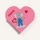 Ein niedliches, rosa und rotes, herzförmiges Notizbuch für Kinder mit einem niedlichen Cartoon-Elefant vorne und einem einfachen Herzmuster auf der Rückseite. Personalisieren Sie es mit dem Namen des Kindes. Eine tolle Alternative zu Bonbons am Valentinstag . © ArianeC Illustrations-Alle Rechte vorbehalten