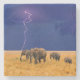 Stone Untersetzer mit einem Foto von wilden Elefanten gezeigt. Wählen Sie aus vier großen Steintypen. Passen Sie dieses Objekt an oder kaufen Sie, wie es ist.