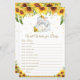Elephant Sunflower Baby Well will Baby Card