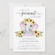 Eine niedliche rustikale Babydusche mit "A Sweet Little Peanut Is On Your Way", geschrieben in einer Mischung aus sanfter, moderner Typografie und einem stilvollen Drehbuch, und einer pastellrosa Aquarellfarbe eines in Sonnenblumen geschmückten Babyelefanten. Personalisieren Sie den Namen der Mutter und die Babydusche Details in schlichter grauer Typografie.