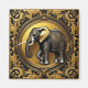 Ein majestätischer, schwarzer Elefant, symbolisiert Stärke und Weisheit, wird vor einem Hintergrund von aufwändigen goldenen Zierrahmen dargestellt, der ein Gefühl von Großzügigkeit und Eleganz ausstrahlt. Der Kontrast zwischen der dunklen Silhouette des Elefanten und den schimmernden goldenen Details des Rahmens schafft ein visuell auffallendes und faszinierendes Bild.