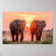 Elephants Walking in Sunset Poster