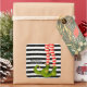 Elfbeine in gestreiften Strumpfhosen und grüne Stiefel auf schwarz-weißen Streifen und goldenen Punkten beinhalten Ihren persönlichen Gruß auf diesen Weihnachts-Quadrat-Aufklebern. PASSENDE Artikel in unserem Geschäft.