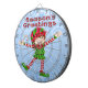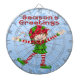 Die Greetings Elf Dart Board der Saison bietet einen hellblauen Hintergrund mit Wirbel und Schneeflocken. Ein glücklicher Weihnachtself trägt Rot und Grün und hält einen bunten Bonbonstock. Stilisierter rot gestreifter Text ist die Grüße der Saison. Ideal für Weihnachts-Party-Spiele oder als Weihnachtsgeschenk! Umfasst 6 Messingdarts (3 amerikanische Dart-Flüge und 3 britische Dart-Flüge). Platine im Regelformat (18" Durchmesser, 1" Dicke). Fertig mit Aluminiumrahmen und Haken. Dieses Design wurde mit dem Original artwork©delightful-doodles.com (http://delightful-doodles.com/) erstellt.