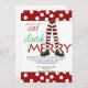 Dieses lustige Design, genannt Christmas Elf Eat Drink and Be Frory Christmas Invitation, hat einen hellen weißen Hintergrund mit rot-weißen Polka Punkt Rand oben und unten. An der Spitze steht, bitte folgen Sie uns - essen, trinken und in rot und grün fühlen. Die hell rot-weiß gestreiften Beine eines Weihnachtselfs bilden einen Teil der Buchstaben R im Wort Merry. Ihr individueller Party-Text geht direkt darunter. Ein einzigartiges Thema für Ihr Party oder Ihre Veranstaltung im Winter.