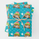 Ein Trio aus Geschenkpackungen, jedes mit einem anderen Design auf ist ideal für Ihre Geschenke am Weihnachtsfeiertag. Das erste Blatt hat das Gesicht eines Elfenmädchens mit braunem Haar, das einen niedlichen Elfenhut mit weißem Pompon trägt. Die zweite hat elf Füße und Strümpfe auf blau und die dritte ein Gesicht eines niedlichen Cartoon elf Jungen mit einem gestreiften Hut Set vor einem blauen Hintergrund voller Polka Punkte in rot und gelb. Diese lustigen und modernen Verpackungsmuster sind ideal für Ihre Familie. Freunde und Kollegen am Weihnachtsfeiertag.