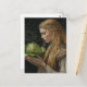 Eine schöne Elfe mit ihrem Salat, die sie in ihrem Garten wuchs