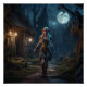 Das elfische Mädchen wandert unter dem Licht des Vollmonds durch die Pfade ihres Dorfes.