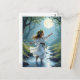 Postkarte: Elfskind tanzt in einem Waldbach.