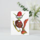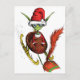 Ein Elf mit großen Augen und spitzen Ohren, mit einem Hut und Outfit vom Weihnachtsbaum, der auf zwei Klingen mit einem langen Schwanz von einem Tier mit einem Holzschlitten aus Single reitet. Ideal für die Weihnachts-, Ferien- oder Wintersaison.