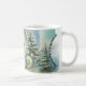 Personalisierte Weihnachts-Elf-Kaffee-Tasse. Das Design umfasst Blau, Weiß Schnee, Schneeflocken, Weihnachtsbaum, Weihnachtsschmuck und Weihnachtself. Verwenden Sie die Platzhalter für TEXT, um die Karte durch Klicken auf 'Anpassen' anzupassen. Bearbeiten mit dem Design-Tool für Ihre Auswahl von Schriftart-Stil und -Format.