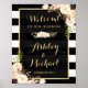 Elfenbein-Blume Schwarz-weißer Streifen Hochzeitsz Poster