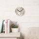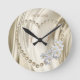 Elfenbein, Grün, Blau, Gold, Seide und Perlen Runde Wanduhr
