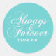 Moderne und stilvolle Immer und Forever Wedding Danke Stickers mit einem schönen handgeschriebenen Typografie Text Design in weiß. Diese einfachen und eleganten Aufkleber Set für eine klassische und romantische Hochzeit und lassen sich leicht mit Ihren Hochzeitsdetails anpassen. Klicken Sie auf "Anpassen", um weitere Personalisierungsoptionen zu erhalten. Die Hintergrundfarbe kann beliebig geändert werden.