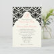 Elfenbein, Schwarz, Korallendamast Mit Monogramm e Einladung