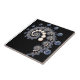 Elfenbeinperlen und blaue Perlenspiralen in einer Spirale auf einem schwarzen Hintergrund.