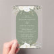 Mit diesen eleganten Akryleinladungen mit zeitlosen Elfenbein- und Salbei-Blumenakzenten stärken Sie Ihren Hochzeitsstil. Die modernen Akrylatmaterialien mit zarten Blume und üppigem Laub verbinden sich auf raffinierte Art und Weise zu einem romantischen, im Garten inspiriert Hochzeitsfest. Ideal für Paare, die ein raffiniertes und zugleich natürliches Ambiente suchen, verbindet dieses Design mühelos Eleganz mit einem Hauch botanischen Charmes und schafft einen angenehmen Ton für Ihren besonderen Tag.