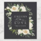 Unsere Hochzeitskollektion Ivory Bloom Aquarell mit zartem Aquarell, Eukalyptus-Blätter, grünem botanischem Blattwerk und Blume mit weißer und elfenbeiniger Tortur. In klassischer Schrift mit Akzenten kalligrafischer Schriften erscheint "Liebe bejubeln". Personalisieren Sie diese Etiketten mit Ihren Initialen und Ihrem Hochzeitstermin, oder Ihrer Wahl des benutzerdefinierten Textes.