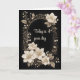 Cluster aus Elfenbein und cremefarbenen Blume und kleinen Knospen umkreisen einen goldenen Rahmen auf schwarzem Hintergrund auf dieser wunderschönen Geburtstagskarte.