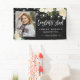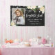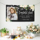 Feiern Sie Ihren Absolvent stilvoll mit diesem eleganten Abschluss in Schwarz und Gold. Mit sanften Elfenbein-Rose, leuchtenden Saitenlichtern und einem modernen Foto-Rahmen ist dieses individuell anpassbare Banner perfekt für Party in der Schule oder im Uni-Abschluß. Personalisieren Sie den Text und das Foto einfach, um einen einzigartigen Sake für den großen Tag zu schaffen.