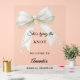 Ein klarer, transparenter Hintergrund, verziert mit einer elfenbeingefärbten Schleife mit Perlen. Personalisieren und einen Namen hinzufügen.