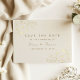 Elegante Save the Date Karte mit zarten goldenen Blumenakzenten auf einem weichen Elfenbeinhintergrund. Enthält zeitlose Skript- und Serif-Schriftart mit vollständiger Anpassung für Ihren Namen und Ihr Datum. Eine romantische und klassische Art Ihre Hochzeit im Stil anzukündigen.