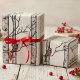 Dieses moderne Winter- und Urlaubspapier zeigt größere handgezeichnet Birkenbäume mit roten Kardinal-Vögeln in schwarzer Tinte, vor einem eleganten Elfenbeinhintergrund.