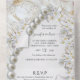 Elfenbeingrün-goldene Perlen auf einer Hochzeit All In One Einladung