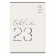 Minimale Elfenbeinheirat-Tischnummern mit Ihren Initialen in der oberen rechten Ecke, das Wort 'Tisch' in einem eleganten Skript-Schriftart, das ein Liebe Herz, und die Zahl.