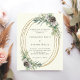 Für eine Winterhochzeit. Elfenbeinfarbener Hintergrund mit Zapfen, weißen Beeren und grüner Farbe. Ein Imitat Goldrahmen. Personalisieren Sie Ihre Namen und Details und fügen Sie diese hinzu. 1 Blatt = 1 Einladung mit Druckkante bis Kante.