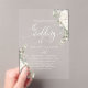 Eine wunderbar schicke und elegante Acrylhochzeit mit einem zarten Elfenbein- und Salbeidesign kombiniert mit einem stilvollen Script-Schriftart. Ideal für Paare, die eine zeitlose, botanische Touch wünschen, ist dieses Design ideal für Hochzeiten im Frühjahr und im Sommer. Die weiche Farbpalette und das ausgeklügelte Drehbuch schaffen ein romantisches Ambiente und machen diese Einladung zu einem unvergesslichen Erlebnis.