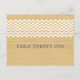 Moderne und trendige Rustikale Zickzack Tischnummer Postcard mit einem kunstbedruckten holzkörnigen Hintergrund und einem zackigen Zackenmuster aus weißen Zickzack Streifen. Dieses Design ist perfekt für eine rustikale und dennoch elegante Hochzeit. Einfach anzupassen, fügen Sie einfach die passende Tischnummer(en) in das Textfeld ein. Klicken Sie auf "Anpassen", um weitere Personalisierungsoptionen zu erhalten.