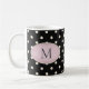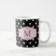 Elfenbeinpolka Dots auf Schwarz-Rosa-Oval-Monogram Kaffeetasse