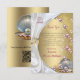 Einzigartige personalisierte Einladungskarten mit goldener Spitze, Perlen und goldenen Ringen durch Elfenbeinseide.