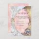 Einzigartige Karten mit Perlen und goldenen Ringen, die durch Elfenbeinseide mit einem rosa Marmorhintergrund verbunden sind, um reichlich aussehende Einladungen und Geschenke zu kreieren.