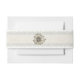 Elegantes Hochzeitsband mit Bauchband, in der Mitte ein Elfenbeinband mit Elfenbeinspitze und einer Elfenbeinbein-Blume. Touch zu Ihrem Hochzeitsempfang Set. Entsprechendes Wrap-Label für die Rücksendeadresse verfügbar.