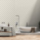 Das Design weist eine zeitgemäße Struktur auf, die mit einem geometrisch geformten kreisförmigen Set aus Elfenbein und einem hellbeigen Hintergrund versehen ist. Dieses verzierte und elegante Muster strahlt eine trendige Hipster-Essenz aus. Es ist ein raffiniertes und elegantes Design, das eklektischen Minimalismus einfängt, ideal für künstlerische Innenarchitekten, Wohngestaltung-Liebhaber, Trendsetter und Liebhaber Vintager, Retro- oder abstrakter digitaler geometrischer Entwürfe. Dieses vielseitige, verzierte und dennoch von einem funky-Hipster-Flair durchflutete Muster wird auf einer Reihe moderner Wohngestaltungen angeboten. Es eignet sich hervorragend, um die Atmosphäre in Zimmern wie Master- oder Gästezimmern, Küchen, Wohnzimmern, Apartments, Studios oder Appartements zu verbessern.