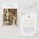 Elfenblumen zieren aufwendige goldene Rollen mit einer atemberaubenden Illustration der Hochzeit von St. Joseph und der Jungfrau Maria Hochzeitsgebetskarte. Ein schönes Geschenk für Ihre Hochzeitsgäste. Anpassen Sie es an Ihre persönlichen Details und Vorlieben.