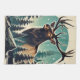 Stilisierte Darstellung eines Elchs mit Geweih inmitten von Kiefern unter sterniger Kulisse, die wilden Charme ausstrahlt.