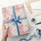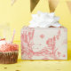 Korallenrot auf cremefarbenem Hintergrund mit naturbelassenen Holzmotiven in diesem Vintagen französischen Stil. Ein Elchpaar, eine alte Eiche, ein Stück Farm frische Evergreens. Eine Eule und ein Kranz vervollständigen diese Szene aus der Provinz.