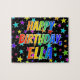 Dieses aufregende, lustige, zum Geburtstag bestimmte Puzzle-Design enthält die Meldung "HAPPY BIRTHDAY, ELLA" mit den Buchstaben, die ein farbenprächtiges Regenbogenspektrum haben, inspiriertes Farbverlaufsmuster, sowie ein lebendiges Sternenhintergrundmuster. Ein lebendiges Rätsel wie dieses könnte eine lustige Art sein, Geburtstagswünsche an jemanden namens Ella zu senden. [~Z0000468]