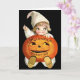 Eine reizend Vintage Halloween-Karte, die ein niedliches Kleinkind mit einem Jack O'Lantern, gemalt vom amerikanischen Illustrator/vom kommerziellen Künstler Ellen Hattie Clapsaddle kennzeichnet.