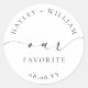 Diese Aufkleber der Gastgeschenk Hochzeit zeichnen sich durch minimalistisches Design und Kalligraphie aus. Personalisieren Sie den Aufkleber mit Ihren Namen und Datum, die Skriptüberschrift ist nicht editierbar. Diese Gunst-Aufkleber können für Hochzeiten, Brautpartys, Babyduschen, Geburtstage oder andere Veranstaltungen verwendet werden. Für eine erweiterte Anpassung dieses Designs, wählen Sie einfach die Schaltfläche "Anpassen" oben.