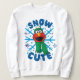 Mit diesem bezaubernden "Schnee Niedlich" Design mit Elmo aus der Sesamstraße laden Sie zum Winterspass ein! In einem gemütlichen grünen Schal und Hut gekleidet, ist Elmo bereit, das kühle Wetter zu genießen, umgeben von einer Flut von blauen Schneeflocken. Der kühne und spielerische "Schnee Niedlich" Text fügt eine reizvolle Touch hinzu, die dieses Design perfekt für Kinder und Erwachsene macht, die die Liebe haben, die Schneesaison mit einem Lächeln zu feiern.