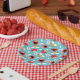 Karo dieses niedliche Elmo-Muster mit Regenbogenwolken! Dieses Objekt wird für 2+ Jahre empfohlen. © 2014 Sesame Workshop. www.sesamestreet.org