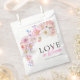 Diese Brautparty Gefälligkeitstaschen sind mit einem warmen rosa Frühlingsblumendesign versehen. Der Text ist vollständig editierbar. Für eine erweiterte Anpassung dieses Designs, wählen Sie einfach die Schaltfläche "Anpassen" oben.